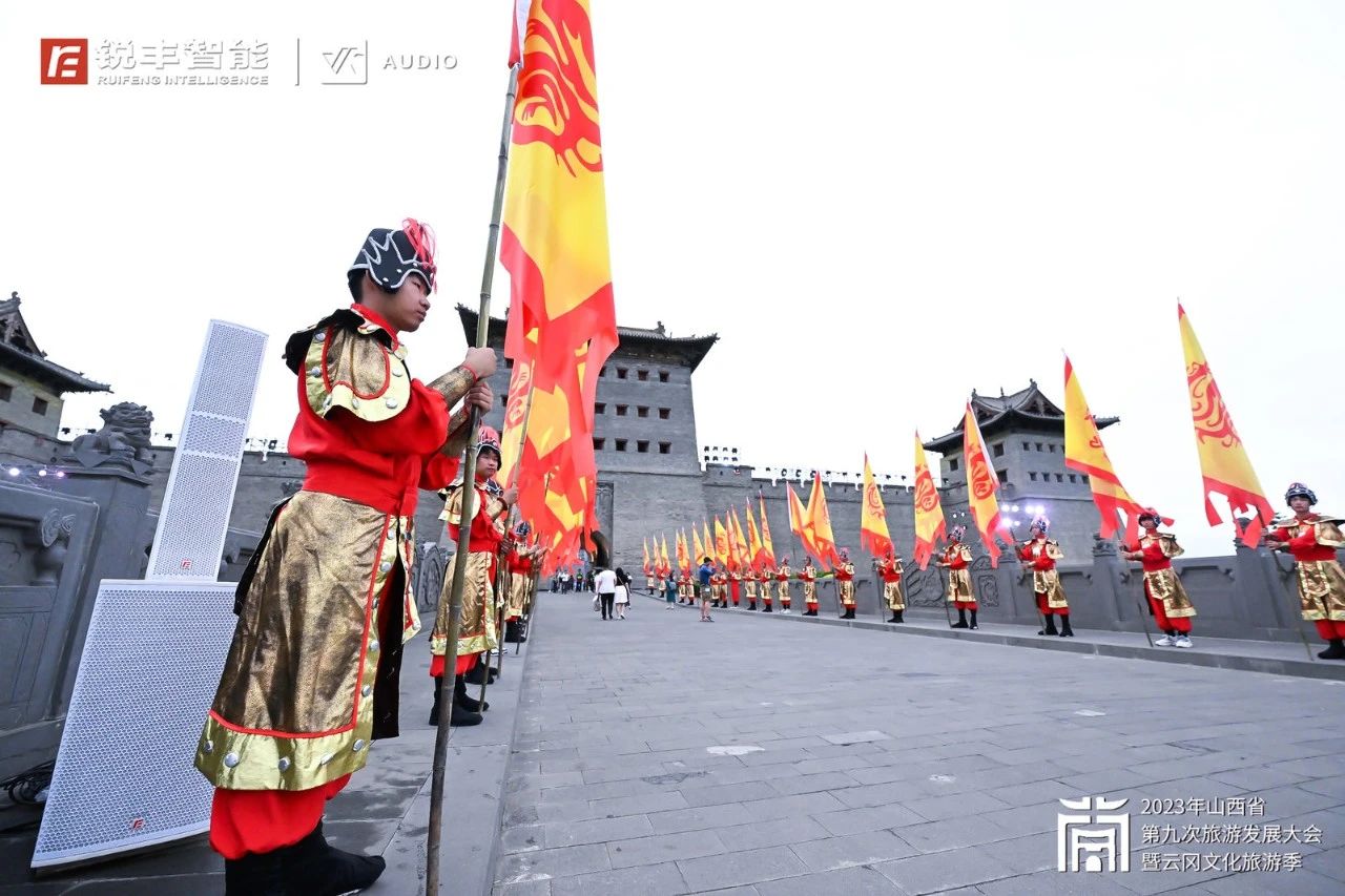 另外,为了配合观众区域两侧的城墙投影视频播放时,通过声音定位引导观众观看投影播放视频内容,锐丰智能在观众席两侧布置了4组ML15SA+L7有源音柱进行扩声。