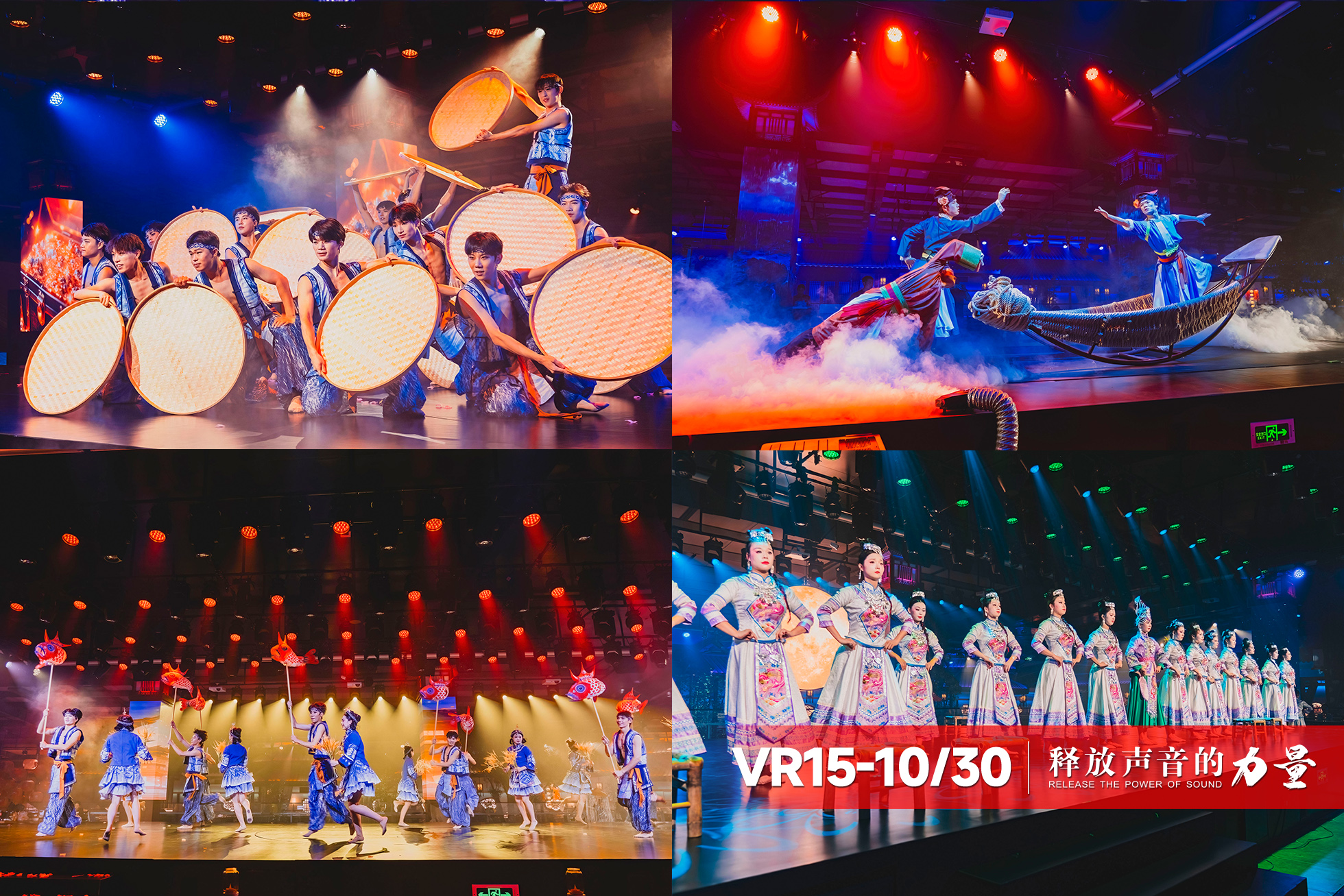 江西南昌云境生态园与《豫章宴·赣水那边》是深度融合的文旅项目,云境生态园提供生态餐饮与高端宴会服务,《豫章宴·赣水那边》是大型沉浸式国风舞剧,以“餐饮+演艺”模式展现江西文化,是国庆黄金周不可错过的文旅新地标。江西南昌云境生态园舞台演出区域选用锐丰智能VR15-10、VR15-30线阵列扬声器系统,WA218双18寸超低频音箱,HD15全频音箱以及周边产品等设备。该系统通过精准的声场覆盖、高保真音质还原及灵活的安装方式,为沉浸式文旅演出提供了可靠的声学保障。