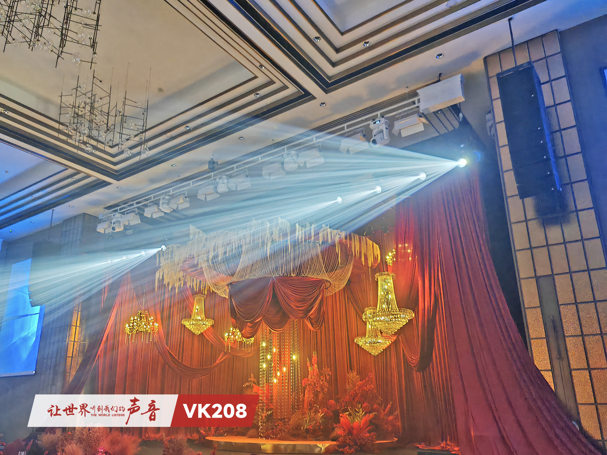 东湖丽华大酒店选用锐丰智能VK208线阵列扬声器系统。VK208线阵列扬声器系统因其出色的性能,被广泛应用于礼堂、宴会厅、剧场及现场流动演出等场合。其高频细腻、通透,低频厚实、圆润有力度,大功率工作时失真小,且覆盖角度有较强的恒指向性,声音听感一致性好。这些特点使得VK208非常适合要求高清晰度的厅堂和流动演出使用。